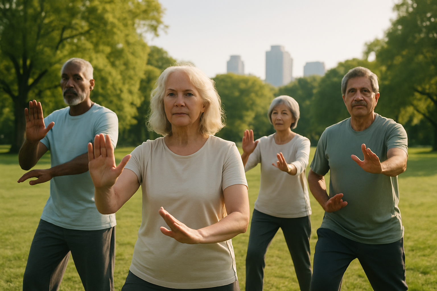 - Strengthens supporting muscles: Tai chi targets the quadriceps, glutes, and deep core—essential muscle groups for stabilizing joints. Even light resistance (like holding your arms up for several minutes) builds endurance.